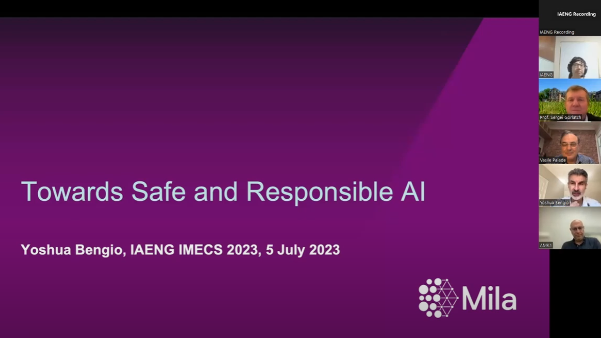 IAENG Distinguished Founders Speech | Towards Safe and Responsible AI | Prof. Yoshua Bengio